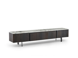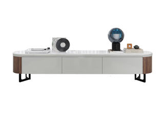 Milos米洛斯 极简 天然烟熏木饰面 天然大理石面 E1级高纤板 不锈钢黑拉丝脚 电视柜