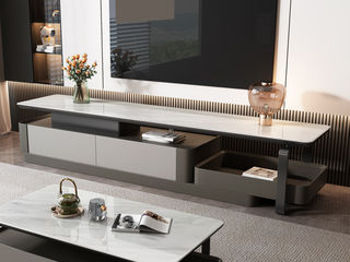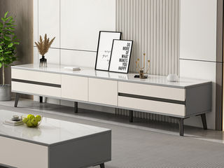 B系优选 极简 微晶石面+中纤板+碳素钢 2米电视柜(未开电源孔)