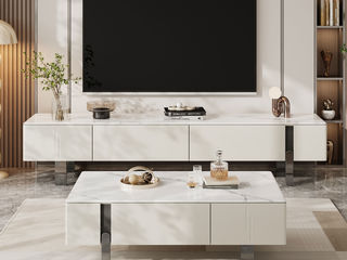 【套餐专享价】每屋优享系列 极简 雪山白亮光岩板+高密度环保板+五金脚 2米电视柜(未开电源孔)