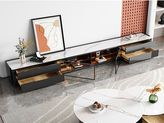 洛萨 极简 环保板+潘多拉岩板+不锈钢 2米电视柜