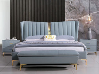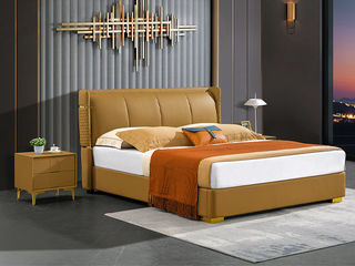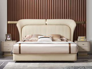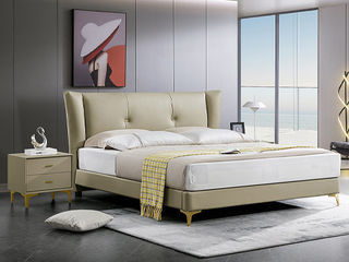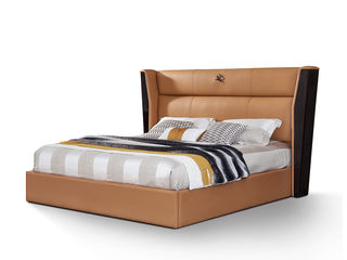 B系优选 轻奢 接触面进口头层牛皮+PVC 十公分钢木排骨架+进口实木 1.8米床+两个床头柜(价格不含高箱,如需定制请咨询客服)