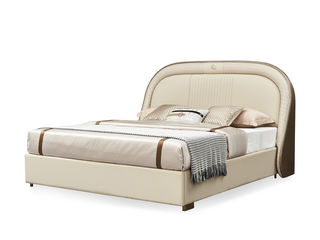 拉斐尔 轻奢 纳帕真皮+仿真皮+多层实木板+木纹木皮+实木内架+碳素钢五金+钢木排骨架 1.8米床