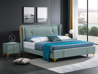 e家优选 轻奢 接触面头层牛皮 松木 实木多层板 高回弹海绵 蓝色 1.8米皮床