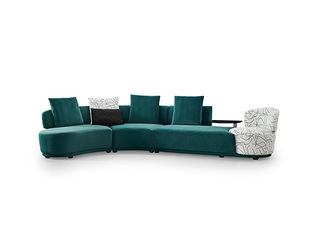 梵纳意简 极简 磨砂布+多层实木板+实木框架+高回弹海绵+碳素钢五金 弧形贵妃+ 无扶三+ 直排贵妃 A11 网红 极简弧形4.5米沙发