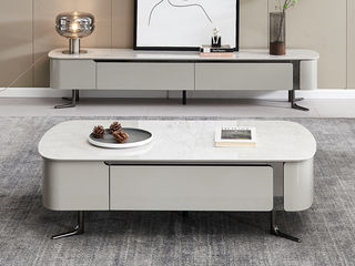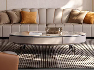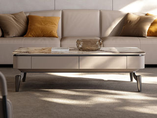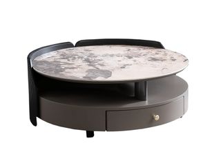 洛萨 极简 进口复合岩板+白蜡木底板+不锈钢底座 1.2米茶几