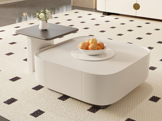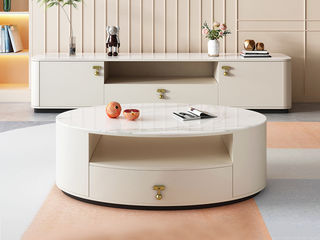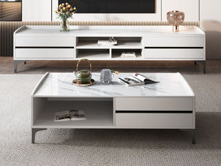 逸澜斯 极简 宾丽白亮光岩板+环保高密度板+实木 1.3米茶几