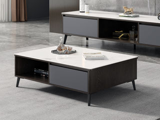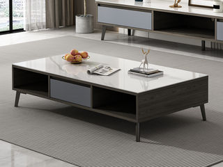A系优选 极简 亮光岩板+环保高密度板+五金脚 1.3米茶几