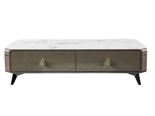 CBD家居 极简 百达翡丽亮光岩板+深咖啡柜面+电镀五金脚 图片色 1.3米茶几