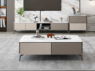 B系优选 极简 中纤板烤漆+岩板+碳素钢脚架 1.3米茶几