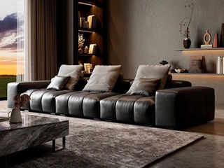 小红书系列 极简 接触面头皮黄牛皮+进口俄罗斯落叶松框架,高回弹高密度海绵 3.2米像素沙发