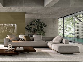 小红书系列 极简 针织面料+实木多层板+进口 俄罗斯落叶松框架,+高回 弹高密度海绵+靠包羽绒+ 羽丝绒结合 4米丛林沙发