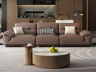 B系优选 极简 接触面头层牛皮+仿皮+多层实木板+实木内架+高回弹海绵+实木5分脚 咖色 直排四位 3米沙发