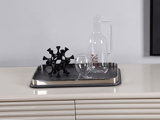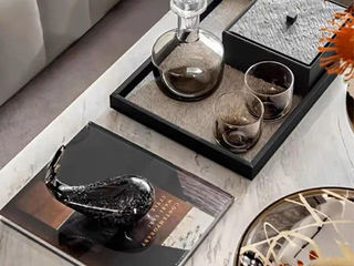梵饰琪 极简 布鲁灰托盘+黑色抽象摆件+简欧冷水壶(大)+松鼠玻璃杯 托盘 运费到付