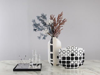 梵饰琪 秋绿手扎花+淡雅花瓶(高)+淡雅花瓶(矮)+马克人摆件(黑)+马可尼果盘04+黑白页仿真书16 摆件 运费到付