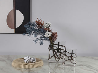 梵饰琪 帝王手扎花+环动花瓶(大)+环动花瓶(小)+极简纺石果盘+肌理球(一对) 摆件 运费到付