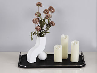 梵饰琪 极简 玄青托盘+电子蜡烛(直径8CM-15)+电子蜡烛(直径8CM-12.5)+电子蜡烛(直径8CM-10)+相靠花瓶+5头秋蓝蒲公英 托盘组合-21 运费到付