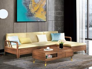 乐芙兰 北欧 进口白蜡木+全实木框架+多层实木板+高回弹海绵+科技布 图片色 3+贵妃左转角3.02米沙发