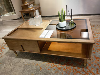乐芙兰 北欧 进口白蜡木+多层实木板+静音导轨 原木色 1.28米茶几