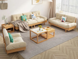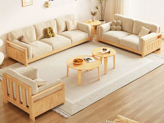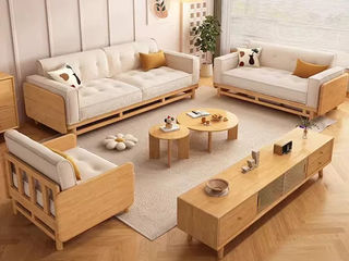 简森曼 北欧风 科技布+扶手坐板背架为橡胶木 座板下两条托方为松木 原木色 1+2+3沙发组合(不含茶几边几) 【实木拼接工艺】