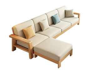 简森曼 北欧风 科技布+扶手前方靠背框架为橡胶木靠背板为桉木芯坐板为松木 原木色 四加脚踏 【实木拼接工艺】 2.64米沙发