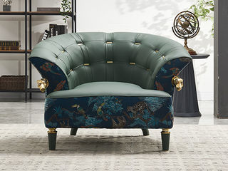 卡芙妮 美式 进口落叶松+进口橡胶木脚+多层实木板+高回弹海绵+蛇形弹簧+彩图布+超纤皮+钛金不锈钢 图片色 休闲椅