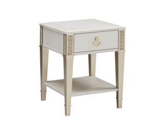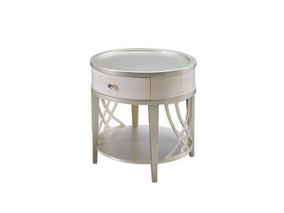 美克金典 美式 进口榉木+碳素钢五金+多层实木板+银箔 米白+香槟银 0.62米边几