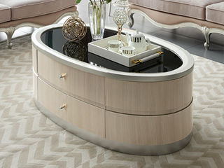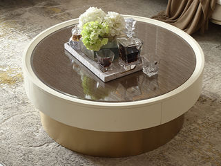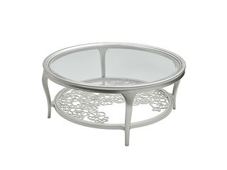 艾美侈 美式 进口榉木+进口沙比利木皮+钢化玻璃 珍珠银 1.066米圆形茶几