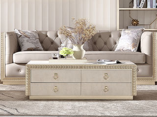 艾美侈 美式 进口榉木+艳阳花木皮+不锈钢拉手 香槟银+古典白 1.25米茶几