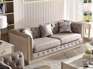 艾美侈 美式 俄罗斯桦木+接触面超纤皮+后背棉麻 香槟银 三人位2.2米沙发