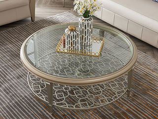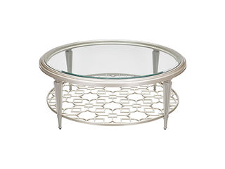 艾美侈 美式 进口榉木+镂空金属层架+玻璃 香滨银 1.215米圆形咖啡桌茶几