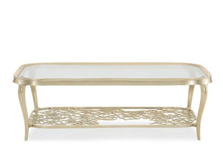 艾美侈 美式 进口榉木+银箔+镂空金属层架+玻璃面板 银箔金 1.28米咖啡桌茶几