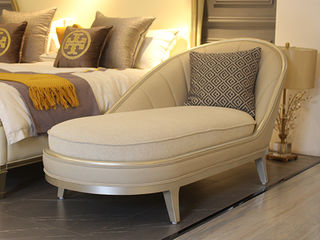 美克金典 美式 欧洲进口榉木+实木多层板+仿真皮+布艺+高回弹海绵 香槟银 贵妃榻