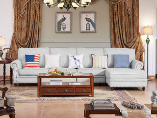 多纳宝 美式 美式 棉麻布+高密度回弹海绵+进口实木 1+3+左贵妃 转角3.42米沙发