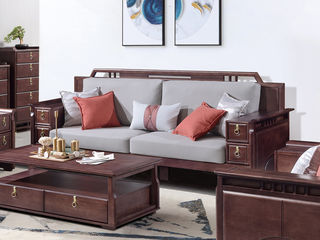 美檀家居 新中式 进口黑檀木+仿真皮+高回弹海绵+多层实木板+电镀五金 黑檀色 三人位 2.7米沙发