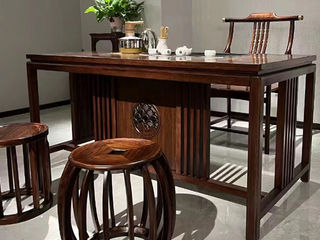 美檀家居 新中式 进口黑檀木+多层实木板+电镀五金+电磁炉(不含凳子椅子) 黑檀色 1.6米岛台 茶台