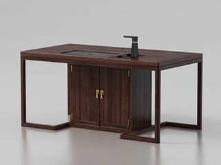宝瑞·檀风 新中式 印尼金花梨木框架+多层实木板贴皮+电镀五金+电茶炉 紫檀色 1.6米岛台 茶台