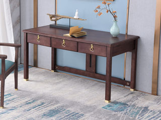墨槿 新中式 小乌金+实木多层板 乌金色 1.6米实木书桌
