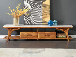 归鹊 新中式 乌金木框架+大理石台面 2.18米电视柜