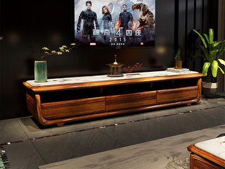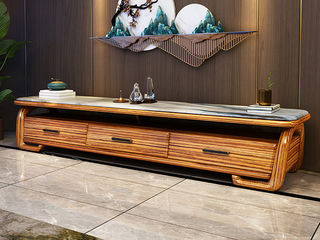 归鹊 新中式 乌金木框架+大理石台面 2米电视柜