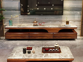 美檀 进口黑檀木+多层实木板+电镀五金+岩板+静音缓冲导轨 茶几