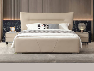 维利品尚 现代简约 接触面头层真皮+实木内架+15公分排骨架+镀铬银脚 1.8米床