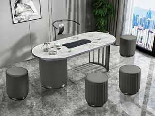 上铭轩 现代简约 电镀不锈钢+岩板+全自动电磁炉+茶具 图片色 1.6米茶台(不含椅子)