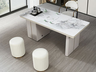 上铭轩 现代简约 岩板+E1级中纤板+烤漆柜体+全自动电茶炉+茶具(不含椅子) 拉伸 1.5米岛台 茶台