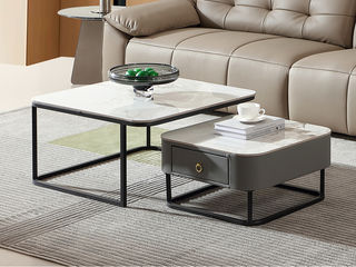 A家家居 现代简约 E1级中纤板+多层实木板+ 碳素钢五金+静音导轨+ 岩板 香奈儿 0.8米组合茶几