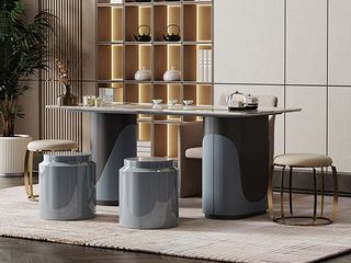 鹿屿 奶油风 潘多啦岩板+蓝烟色烤漆(环保中纤板E1板)1.8米茶台