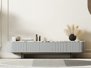 鹿屿 奶油风 天然石大象白++金属+浅灰烤漆(环保中纤板E1板) 2.2米电视柜