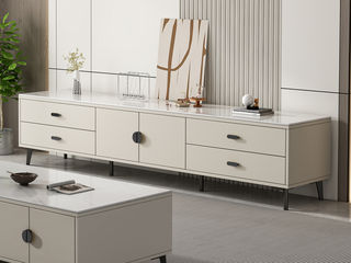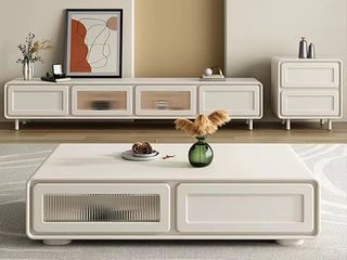 B系优选 奶油风 油漆面+密度板 脚架:茶几密度板 电视柜(未开电源孔)实木 2米电视柜(未开电源孔)