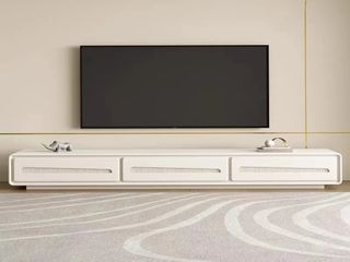 B系优选 奶油风 实木多层板弯板+E1板材烤漆面 奶白色 2米电视柜(未开电源孔)