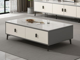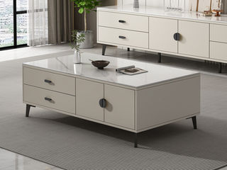 【套餐专享价】每屋优享系列 奶油 雪山白亮光岩板+高密度环保板+五金脚 1.3米茶几