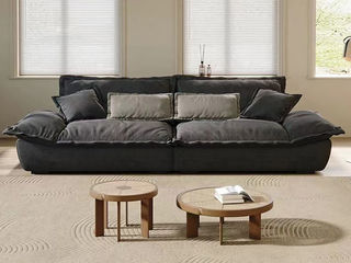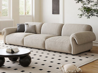 非凡工艺 现代简约 云朵 网红 绒感猫爪布+框架落叶松木+实木脚 2.2米 三人位一体 沙发